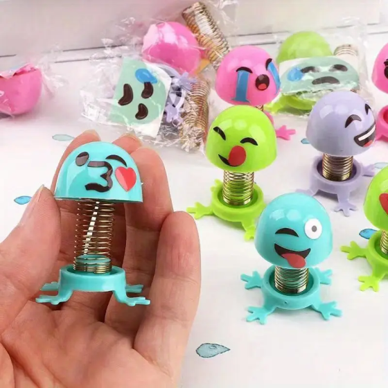 Relleno para piñata. Plástico. 4cm x 2.5cm. Juguete tipo resorte. + 6 años. Tran sticker para decorar sus caritas. Pégales en la cabeza para que reboten.