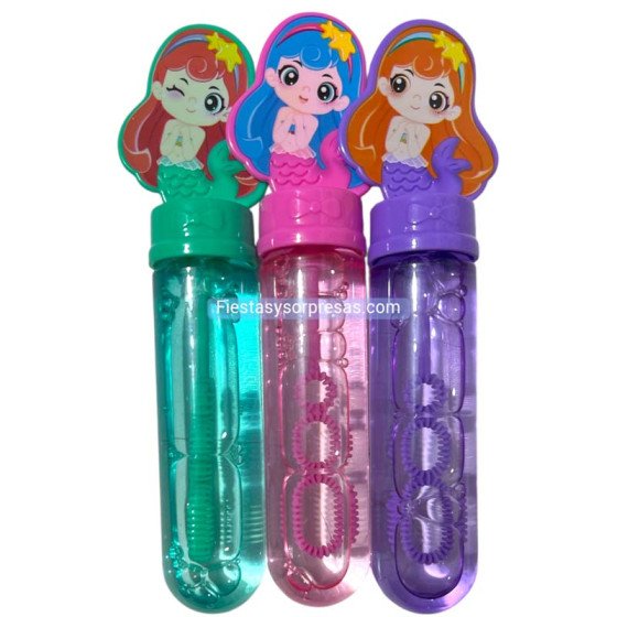 Docena de Burbujeros de agua Sirenita. 12cm x 1.5cm. Burbujas en AGUA. Hermosos y coloridos. Abundantes y grandes burbujas que duran. Fiesta arco iris.