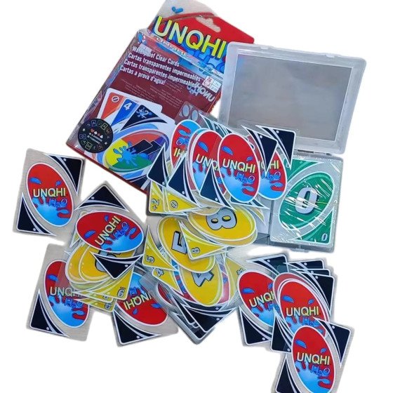 Diviértete con este clásico de estrategia para 2–10 jugadores. Incluye 108 cartas: 19 azules, 19 verdes, 19 rojas, 19 amarillas; además cartas especiales (2 salto, 2 reversa, 2 toma 2 por color), 4 comodines cambio de color, 4 comodines toma 4 y 4 cartas en blanco.