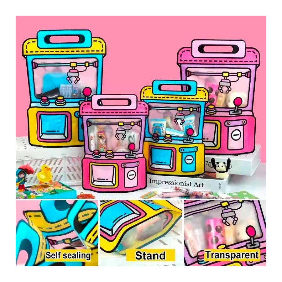 Las Bolsas para Sorpresa Máquina de Dulces Azul son perfectas para entregar dulces y detalles de manera práctica y divertida en tus fiestas infantiles 🎉💙. Su diseño colorido inspirado en una máquina de dulces las hace ideales para celebraciones temáticas llenas de alegría.