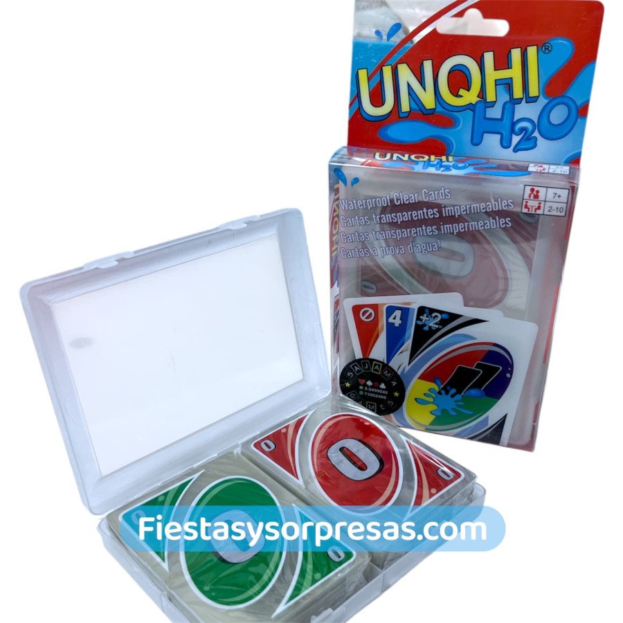 🌊 UNO Aqua H2O – La edición especial del clásico juego de cartas, diseñada para resistir agua, arena y humedad. Perfecto para jugar en piscinas, playas, viajes y exteriores, manteniendo toda la emoción del UNO tradicional 🎉.