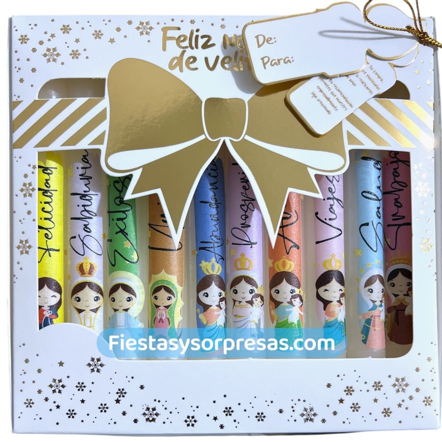 ¡Celebra el ✨Día de las Velitas✨ como se debe! Esta linda caja incluye 10 velas decorativas de la Virgencita elaboradas en parafina, con medidas de 14 cm x 1.5 cm, perfectas para iluminar la noche más mágica del año 🌟.
